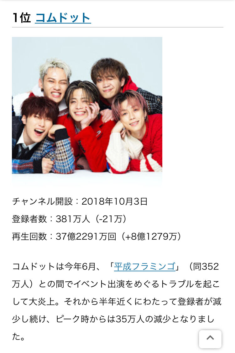 コムドット以外の騒がれもしてないのに減ってるのはヤバいやろ