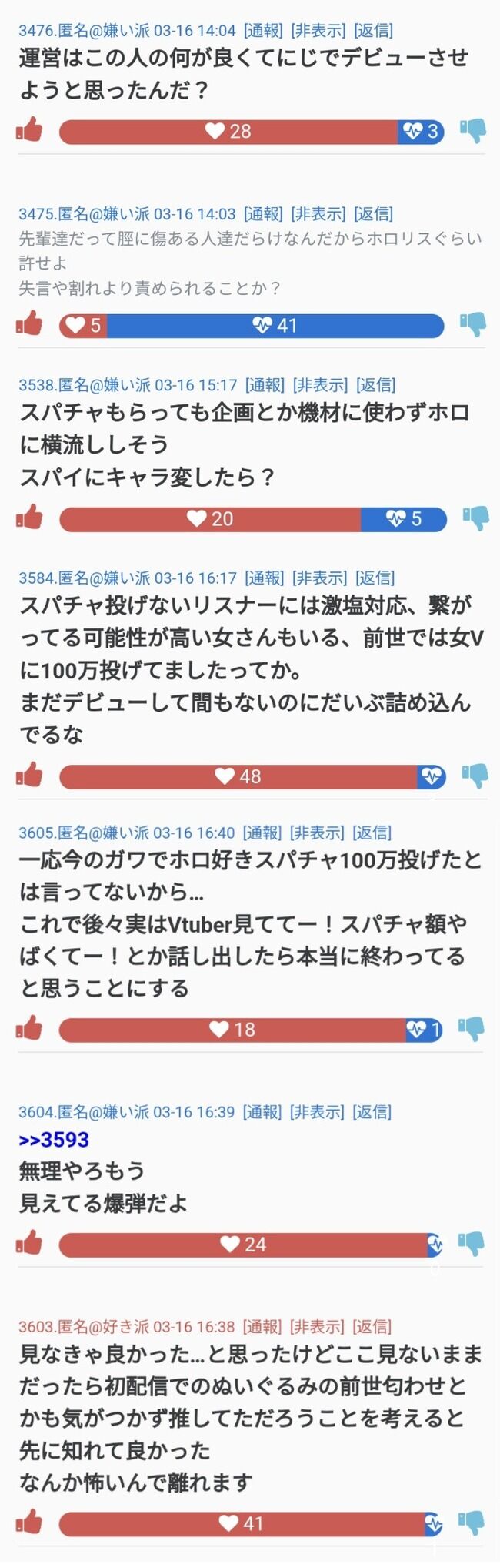 過去にスパチャ投げてただけでここまで叩かれてるって普段から匿名でホロ叩きとかしてる奴って・・・