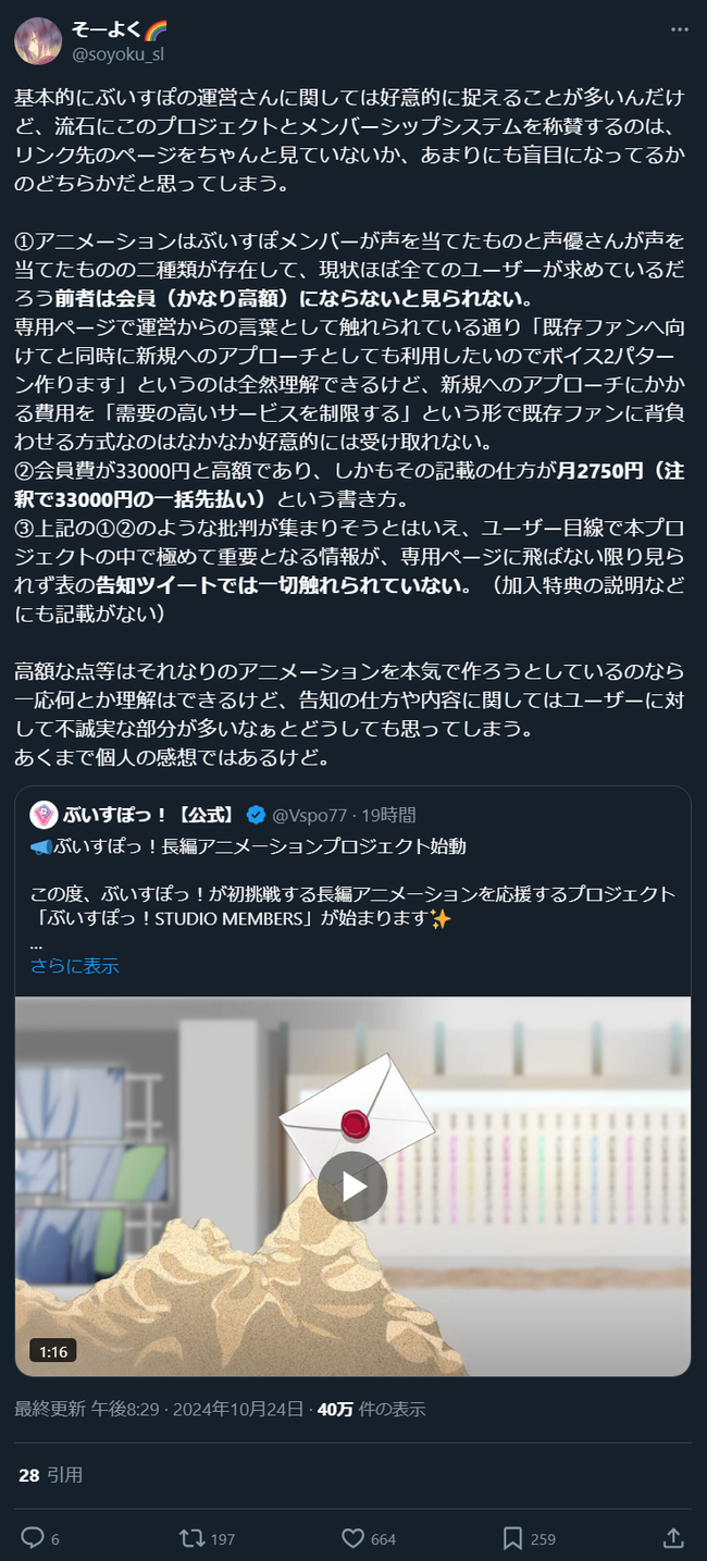 — ぶいすぽっ!【公式】 (@Vspo77) October 24, 2024