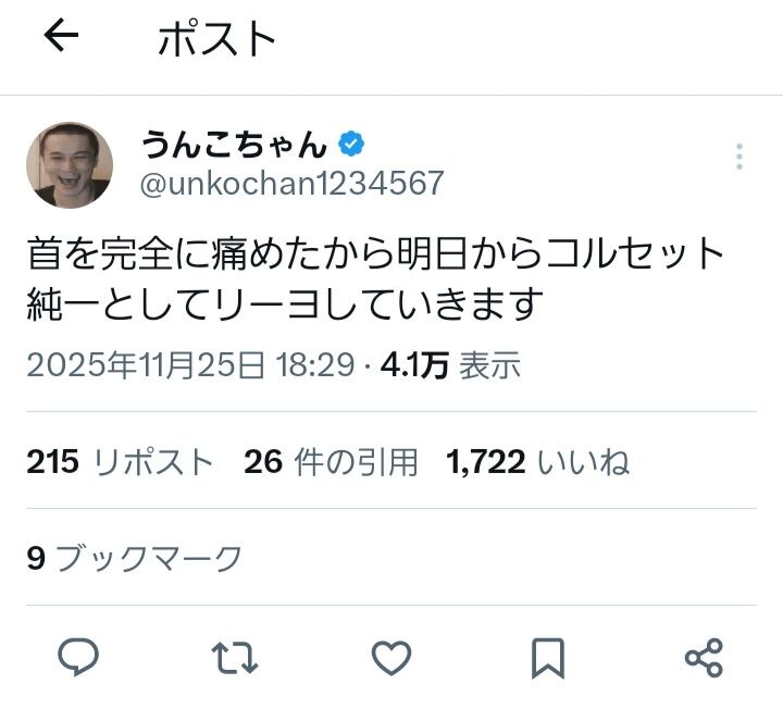 👸「首を完全に痛めたから明日からコルセット純一としてリーヨしていきます」
